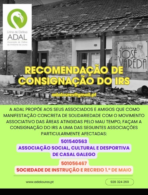 No próximo dia 18 de março, a ADAL – Associação de Defesa do Ambiente de Loures reúne-se em Assembleia Geral Ordinária.