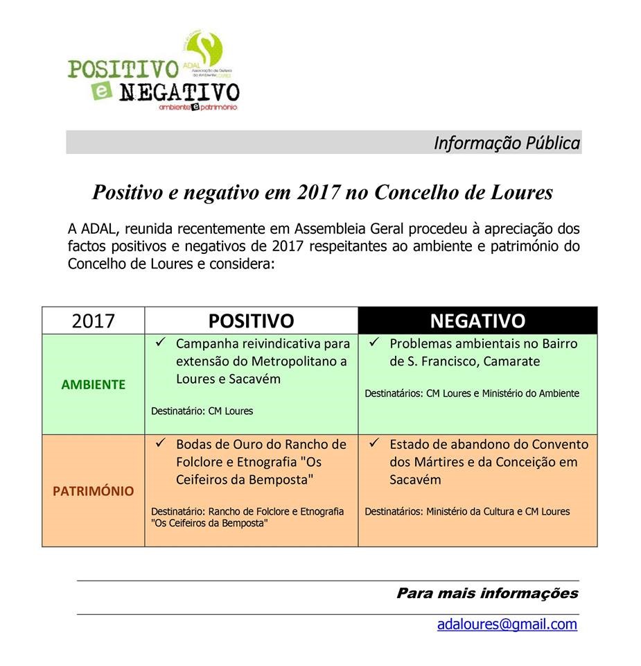 factos positivos e negativos de 2017 respeitantes ao ambiente e património do